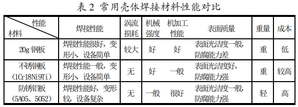 環網柜焊接氣箱常用材料主要有20g鋼板、不銹鋼板(1Cr18Ni9Ti)、防銹鋁板(5A05,5052)等。其性能對比見表2。